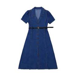เดรสผ้ายีนส์ยาวมีสายคาดเอวสำหรับผู้หญิงมาใหม่ฤดูร้อน