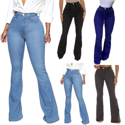 กางเกงยีนส์เอวสูงย้อนยุคสำหรับผู้หญิงกางเกงผ้ายีนส์แบบลำลองรัดรูปทันสมัย