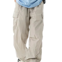 กางเกงผ้าเดนิมเอวกลางแบบสั่งทำกางเกงผ้าร่มพับสองชั้นกระเป๋าด้านข้างขนาดใหญ่กระเป๋าผ้าซักเทคนิคสีน้ำตาล